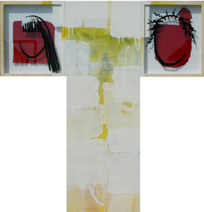 Cin.s.el Şeyler-1, 2005, tuval, cam, yağlıboya, bez, 100×95 cm