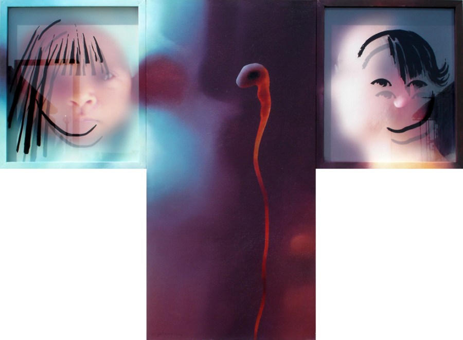 Cin.s.el Şeyler-14, 2005, tuval, cam, yağlıboya, dijital baskı, 70×95 cm
