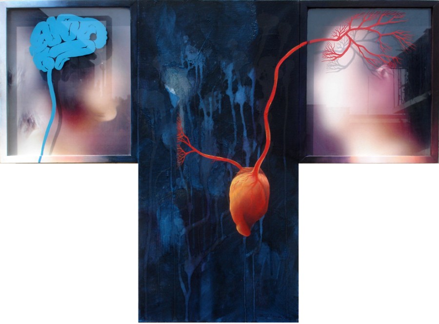 Cin.s.el Şeyler-15, 2005, tuval, cam, yağlıboya, dijital baskı, 70×95 cm