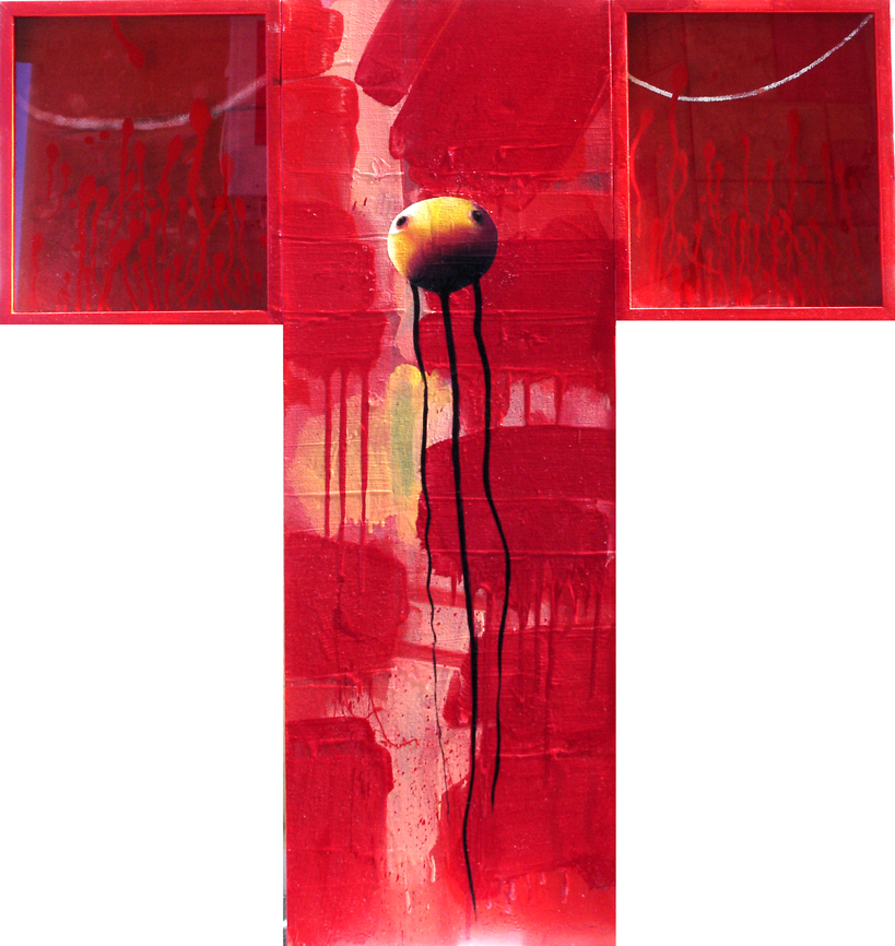 Cin.s.el Şeyler-3, 2005, tuval, cam, yağlıboya, bez, 100×95 cm