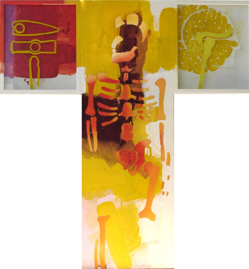 Cin.s.el Şeyler-5, 2005, tuval, cam, yağlıboya, sunta, 100×95 cm