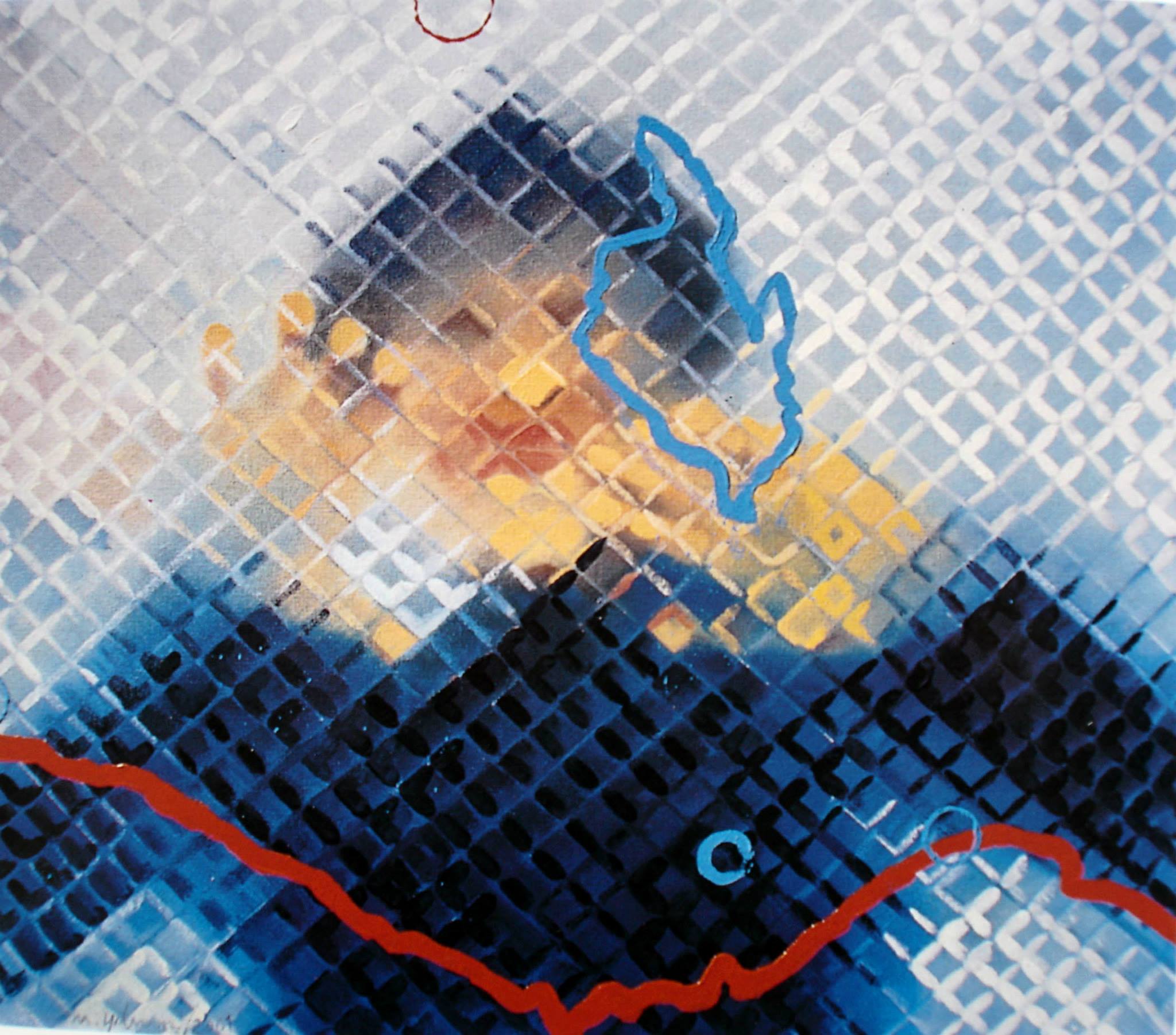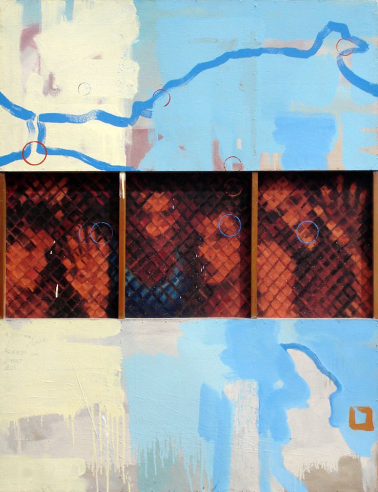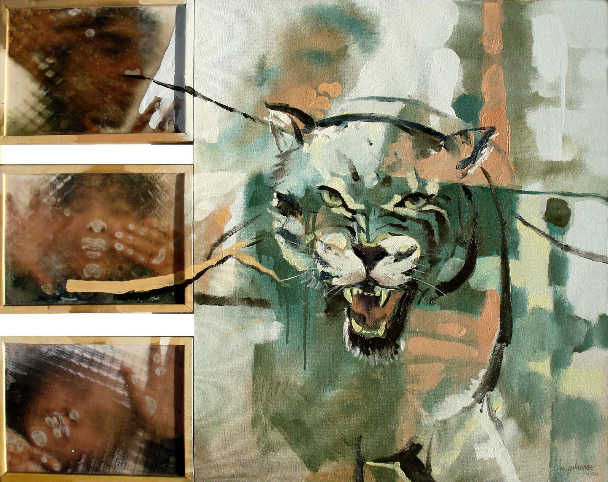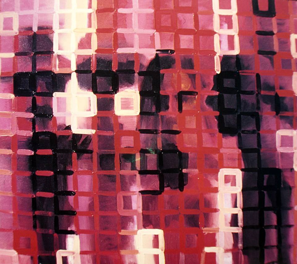 Kafeste, 2000, tuvale yağlıboya, dijital baskı, polyester, 70×89 cm
