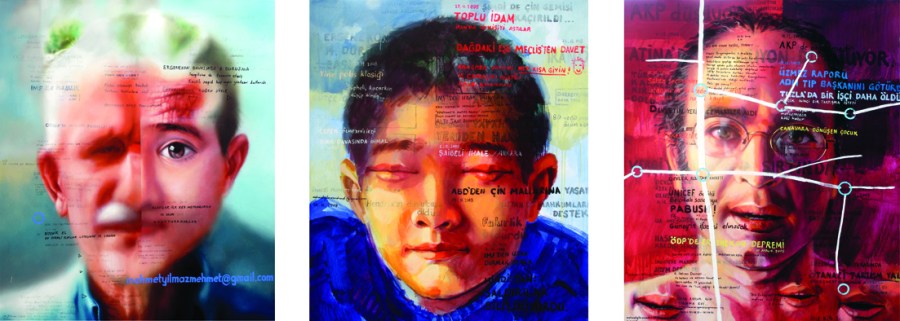 Günlük-1-2-3, 2008, tuvale yağlıboya, akrilik, kalem, her biri 142 x 122 cm (sergiden önce)