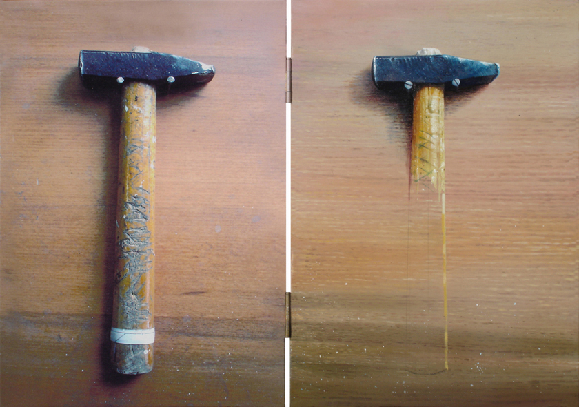 Çekiç ve çikeÇ, 2012, sol, tuvale dijital baskı; sağ, tuvale yağlıboya 48 x 68,5 cm / Hammer & remmaH, 2012, left, digital print on canvas, right, oil on canvas