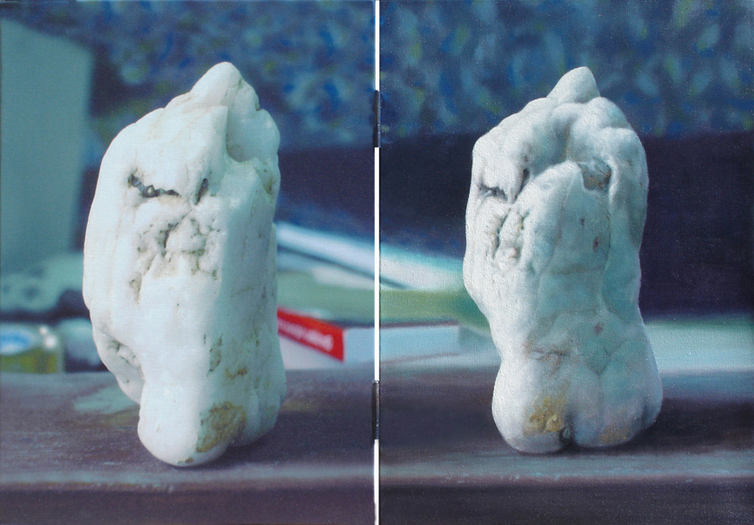 Taş ve şaT-5, 2012, sol, tuvale dijital baskı; sağ, tuvale yağlıboya, 48×68,5 cm / Ston & notS-5 left, digital print on canvas; right, oil on canvas