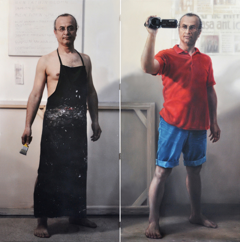 Mehmet ve temheM-1, 2011, sol, tuvale dijital baskı; sağ, tuvale yağlıboya, 200×197 cm Mehmet & temheM-1, 2011, left, digital print on canvas; right, oil on canvas
