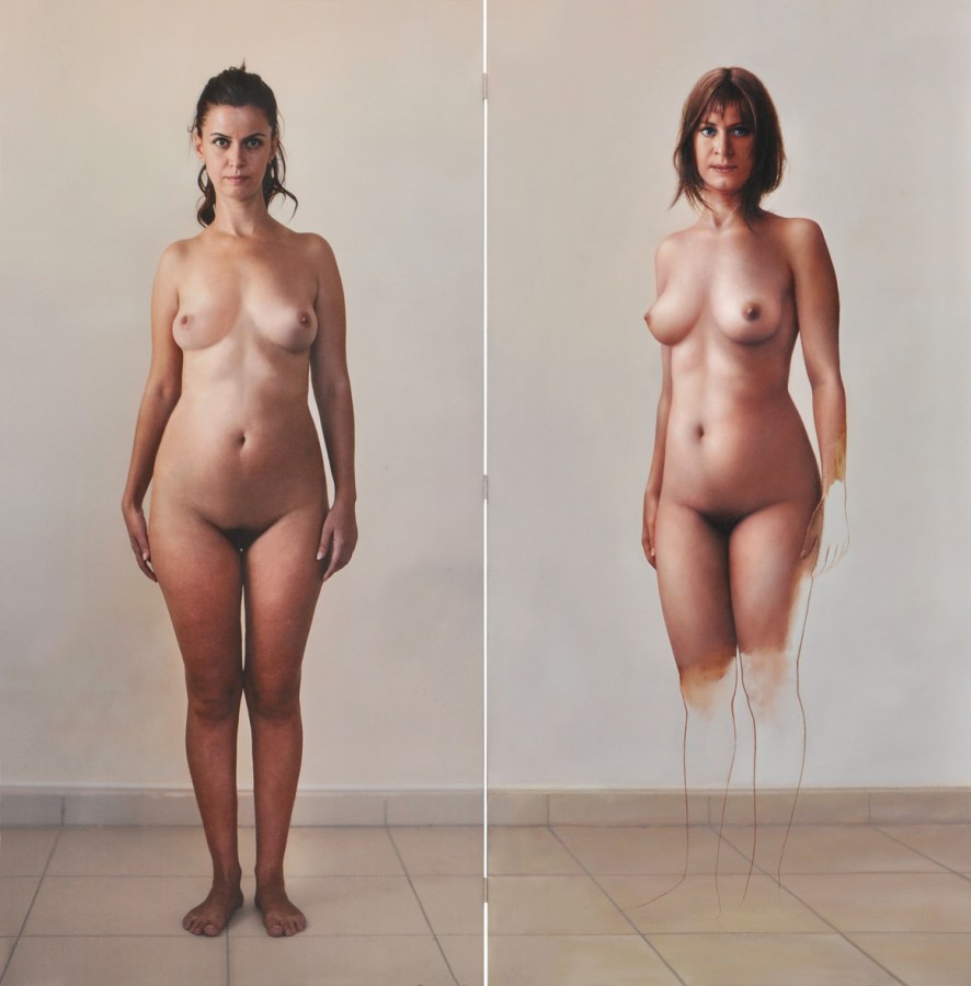 Bir katolik ve Bir Sünni, 2014, sol, tuvale dijital baskı; sağ, tuvale yağlıboya, 200×197 cm