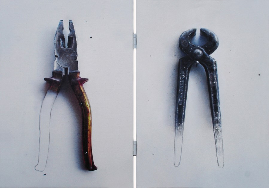 Bir Laik ve Bir Dindar-1, 2014, sol, tuvale dijital baskı; sağ tuvale yağlıboya, 33 x 47 cm / A Secular & A Religious, left, digital print on canvas; right, oil on canvas