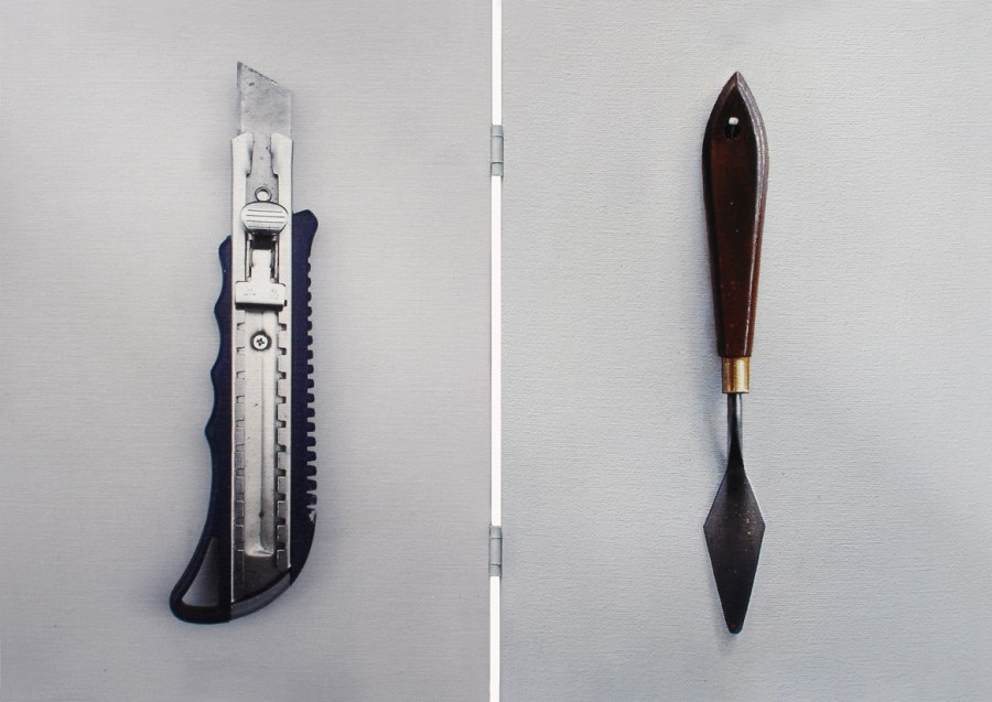 Bir Türk ve Bir Rum, 2014, sol, tuvale dijital baskı; sağ tuvale yağlıboya, 33 x 47 cm / A Turk & Greek, left, digital print on canvas; right, oil on canvas