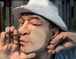 - Heymimres-1 (Bir Sanatçı ve Bir Gazeteci), 2016, mdf, ağaç, silikon, alçı, boya, fotoğraf, kumaş, saç, peruk; önden görünüş, 200x193x47,5 cm / Heymimres-1 (An Artist & A Journalist); mdf, wood, silicon, plaster, paint, photograph, fabric, hair, toupee; view from front side