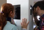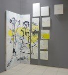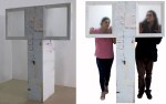 - Heymimres-4 (Küçük Cam), 2017, ağaç, sunta, cam, sunta, akrilik boya, kağıt (sağda, iki izleyici ile), 200x150x66 cm / Heymimres-4 (Small Glass), wood, hardboard, glass, acrylic, paper, (with two spactators)