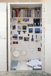 - Heymimres-10 (‘Ben’ler Kutusu / Morris’e Saygı), 2017, sunta, akrilik boya, siyah ayna, kağıt, ağaç, işten iki görüntü, 200x46x42 cm / Heymimres-10 (‘I’s Box / After Morris), hardboard, wood, dark mirror, acrylic, paper, two images from the work